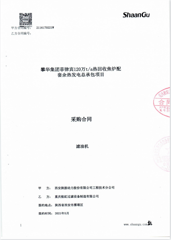 西安陝鼓動力工程技術分公司合同